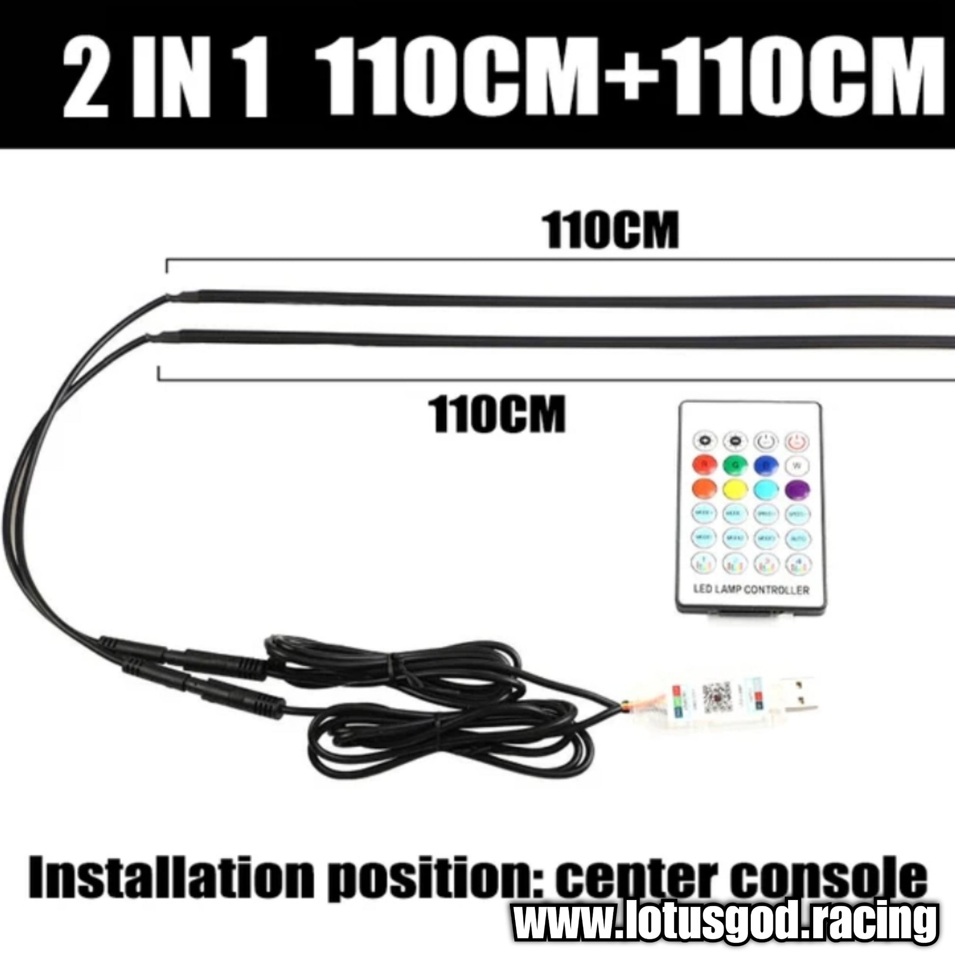 12 Volts Plug & Play 110cm + 110cm | 75cm Usb Powered App + Remote Control RBG COB Rainbow Light For 12v Interior Dash Panel Meter Etc