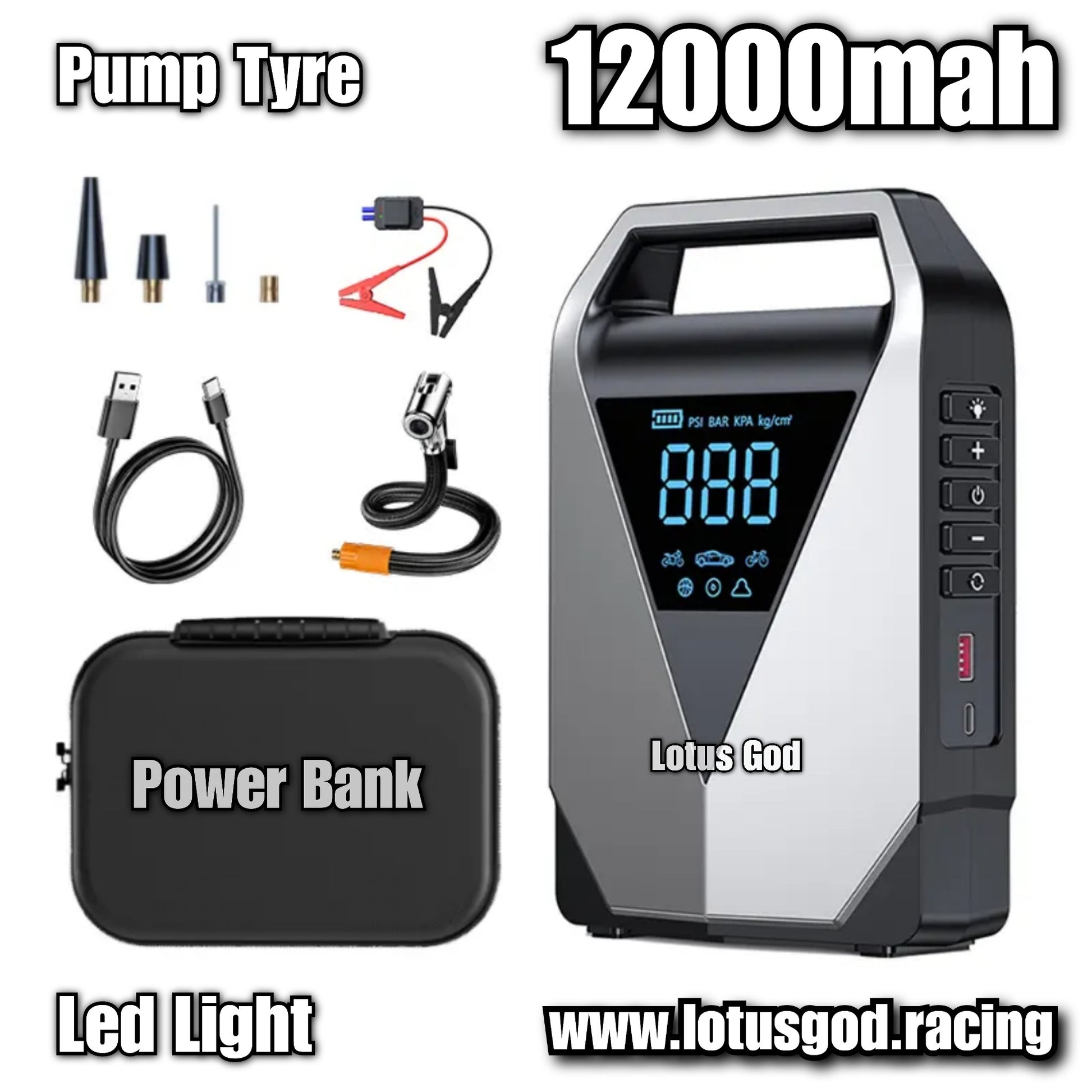12000mah 4 In 1 Portable 12 Volts Car Jump Start + Air Pump Compressor Tyre Inflator + Power Bank + Led Light 12V Car Battery Starter