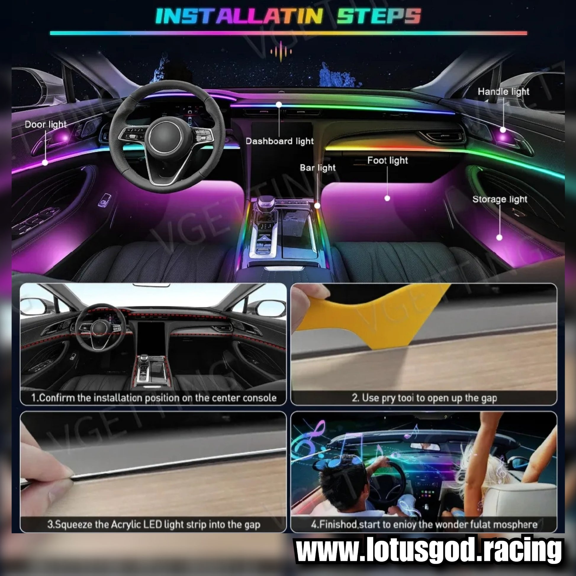 18 In 1 App RGB Super Smooth Dream Rainbow Ambient LED Strip Light Dashboard Glove Box Foot Door Panel Handle Passenger Front Speaker Storage Universal For All Vehicle Cars