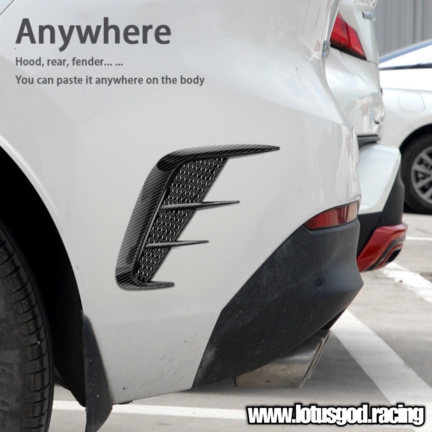 Universal Black | Carbon Fiber Front Rear Fender Bumper Air Flow Intake Shark Fin Panel Grill Vent
